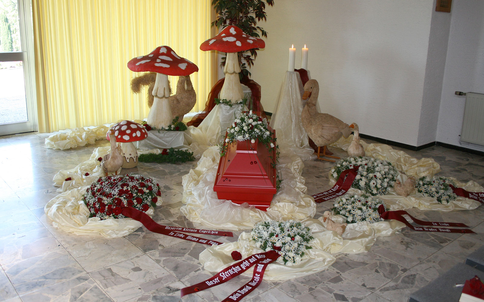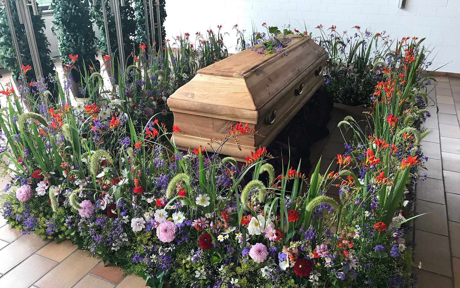 Mit unserer eleganten und würdevollen Floristik möchten wir Sie unterstützen, einen geliebten Menschen zu verabschieden. Gerne arbeiten wir mit Ihrem Bestattungsunternehmen zusammen und machen uns vor Ort ein Bild von den Trauerräumlichkeiten.